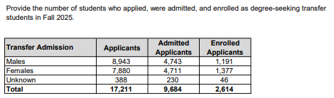 2025年秋季申请转学人数为17211,录取人数为9684,转学录取率为 56.3%。