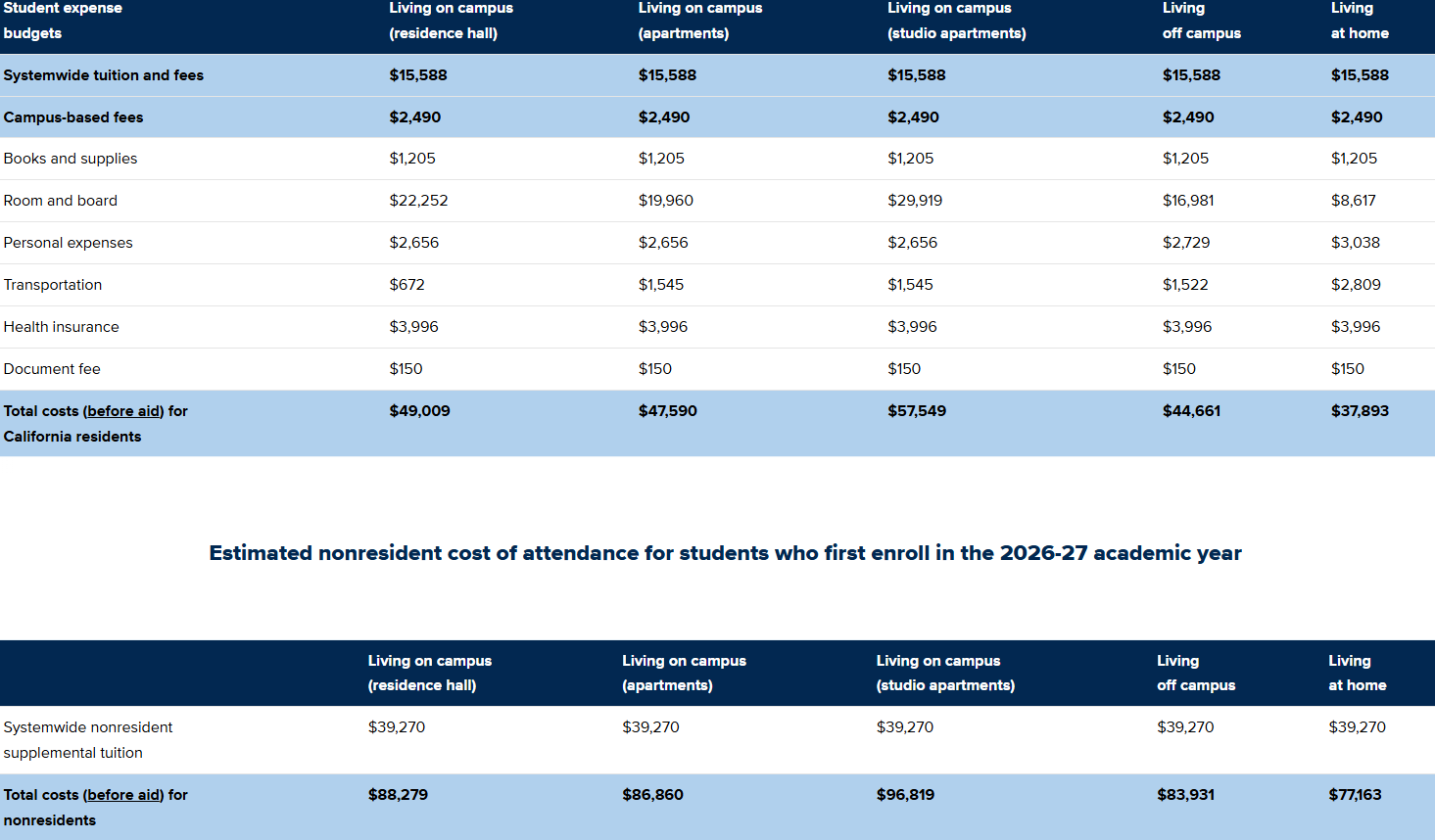 2026-2027学年,州外学生包括国际生一年学费约为5万5千美金,住校生加生活杂费等一年总共约为8万7千美金到9万7千美金。