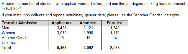 高中毕业后在认可的学院或大学至少完成12个semester学分制课程或者18个quarter学分制课程可以作为转学生申请。建议学生完成英语课程(相当于UMD ENGL 101课程)和大学水平的数学课程(相当于UMD数学107课程或以上)。